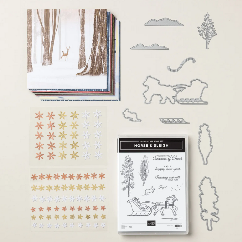 For NZ residents only: when you place a minimum order of $40 with me this week (September 30th - October 6th, 2023), I will send you the Horse & Sleigh Class To Go Pack (4 card kits ie 2 kits for each card design) for FREE! I so appreciate you, my customers xx.